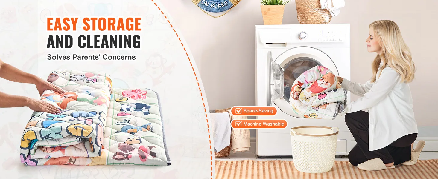 Machine Washable: Spills like urine, milk, fruit juice, food crumbs, snacks, and pet hair can be easily cleaned by sweeping the surface and then placing the activity playmat directly in the washing machine, freeing up your hands and making it suitable for busy parents.