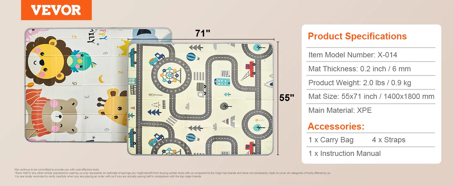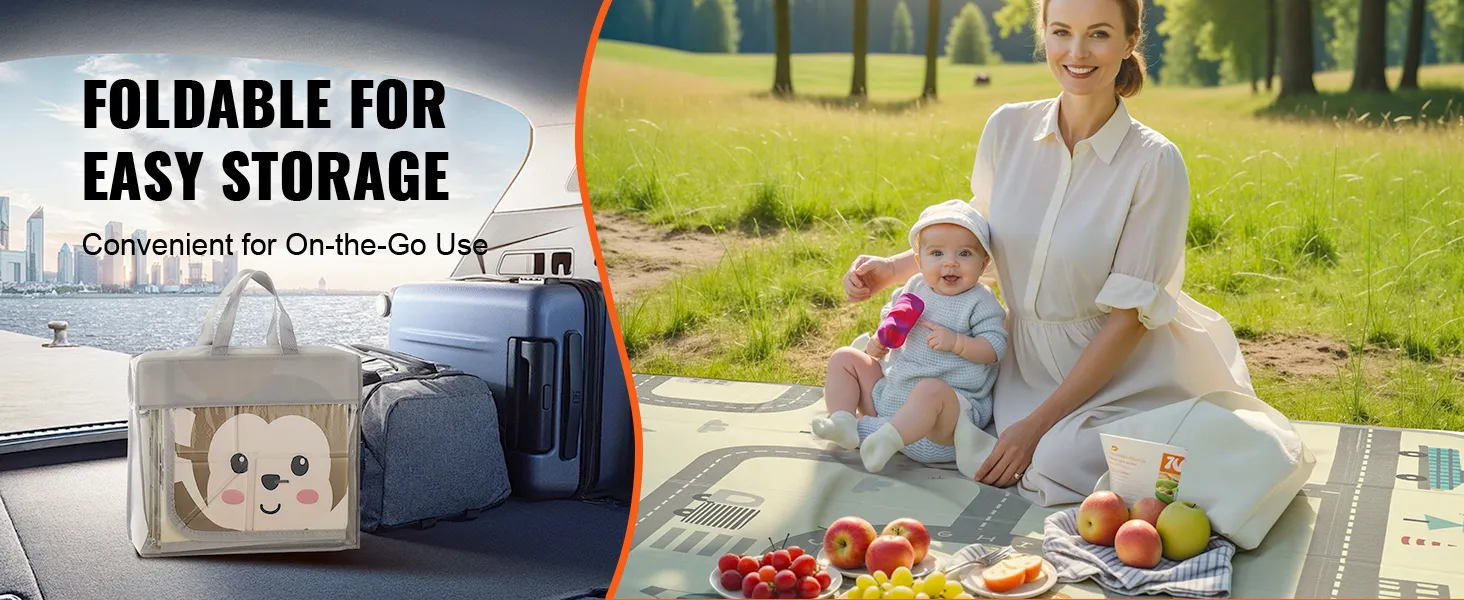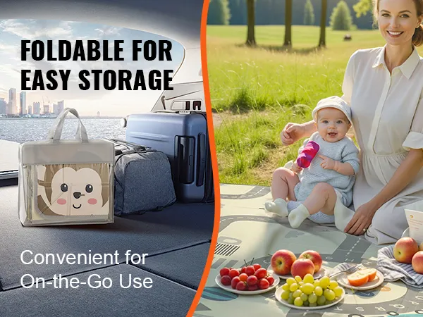 Convenient Storage and Portability: The foldable and lightweight design keeps it compact for home storage or carrying on the go. When not in use, you can easily fold it and tuck it into a corner. This design makes our baby crawling mat suitable for both indoor and outdoor use, ensuring safe playtime at home, in the park, or on the beach.