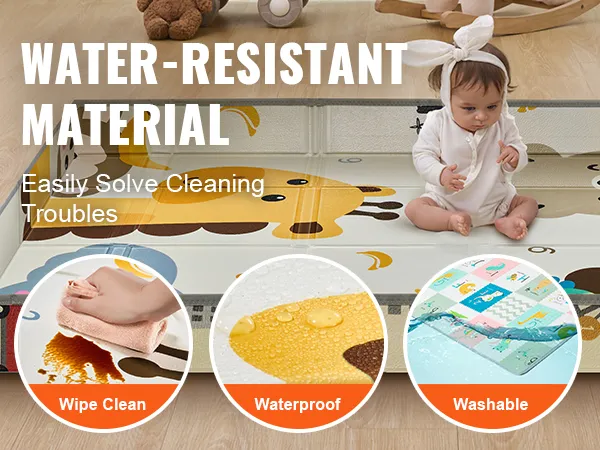 Easy to Clean: This anti-slip crawling foam mat is water-resistant, making it easy to clean spills like urine, milk, fruit juice, or food crumbs with a simple wipe. For larger stains, you can wash it directly with water.