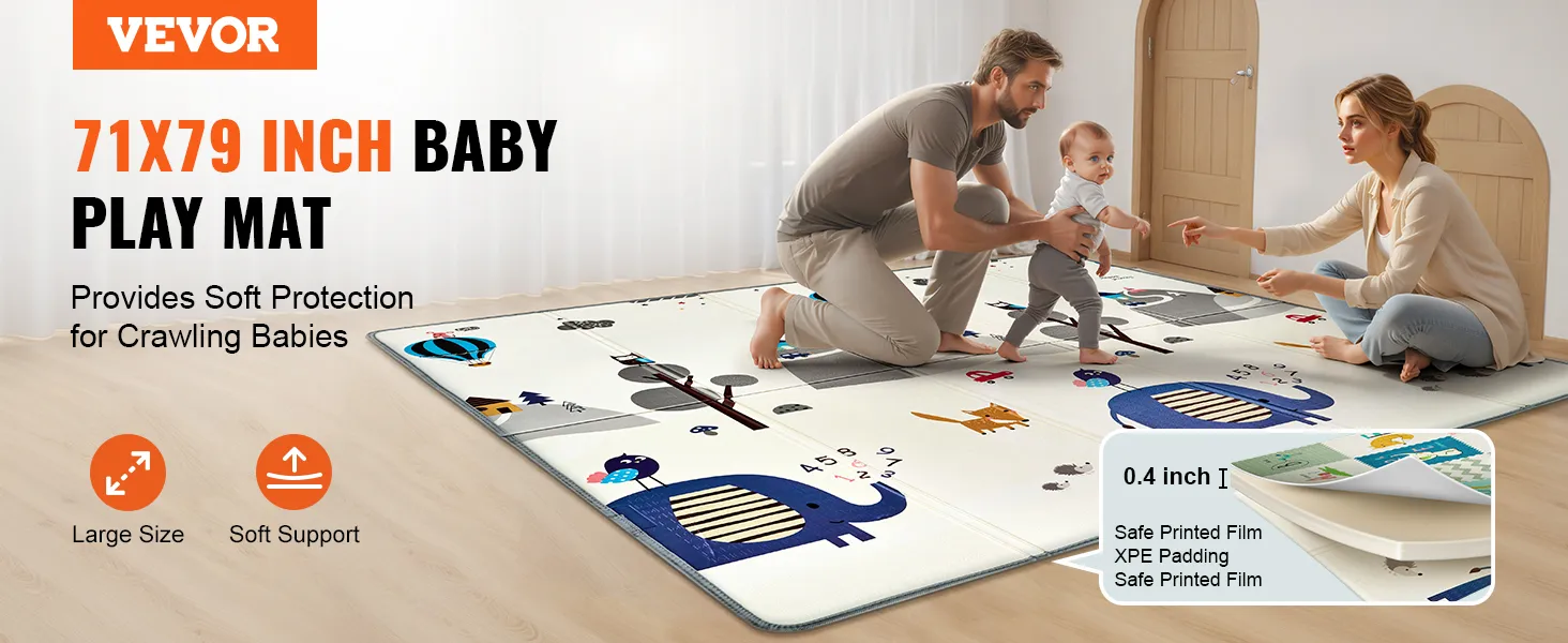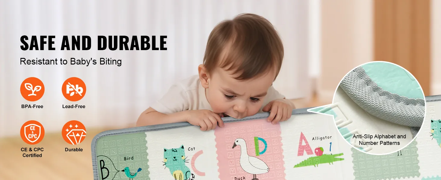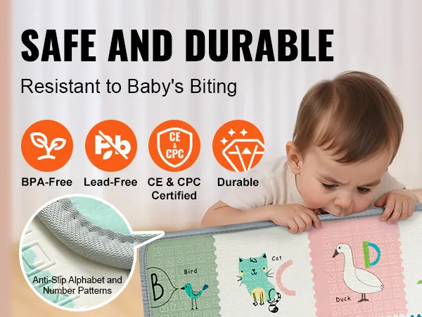 Durable & Long Lasting: We believe in prioritizing your baby's health and safety. The material is safe for direct contact, meeting CPC and CE certifications, and passing ASTM and EN71-1/2/3 tests, ensuring your child's growth and protection. The edges are covered with non-woven fabric to prevent the floor mat's film from being torn by your baby's chewing, extending its lifespan. The surface can be punctured by sharp objects, so avoid placing toys, pens, or items with sharp edges on the mat.