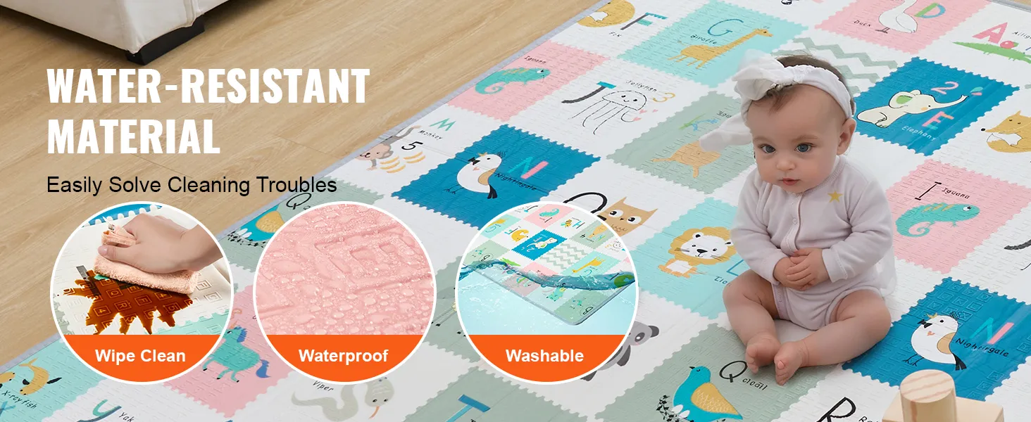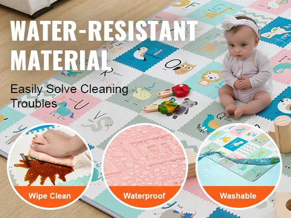 Easy to Clean: This anti-slip crawling mat activity playmats is water-resistant, making it easy to clean spills like urine, milk, fruit juice, or food crumbs with a simple wipe. For larger stains, you can wash it directly with water.
