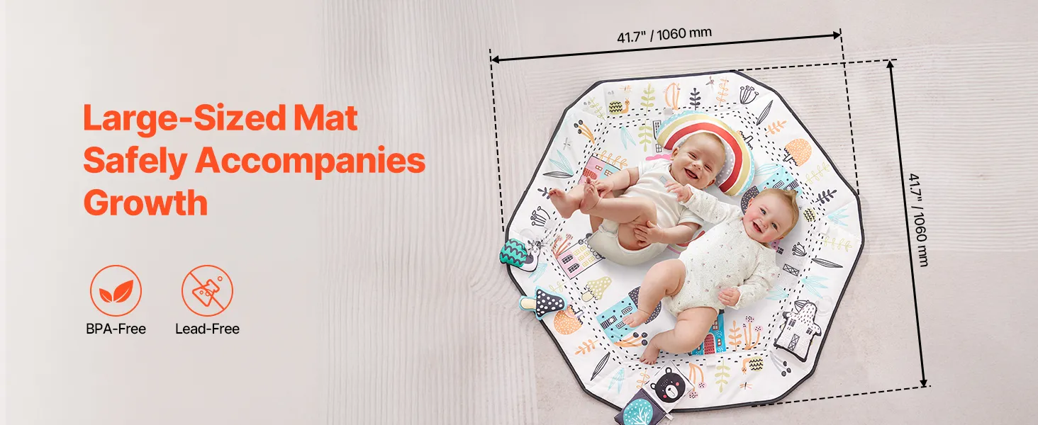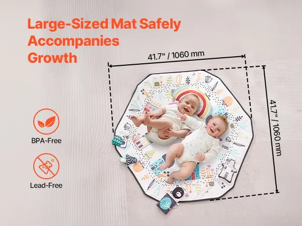 This large 41.7" x 41.7" tummy play mat offers ample space, safely accompanying your baby's growth. Made from BPA-free and lead-free materials, it ensures your baby's health and safety, giving parents more peace of mind.