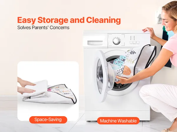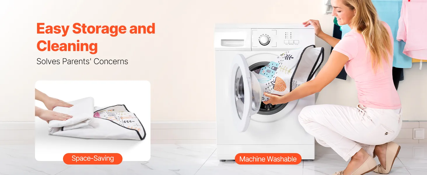 This infant play mat and activity gym is machine washable for convenient cleaning, and it can be easily folded for storage, helping parents solve the concerns of cleaning and storage.