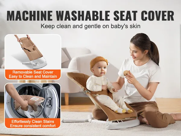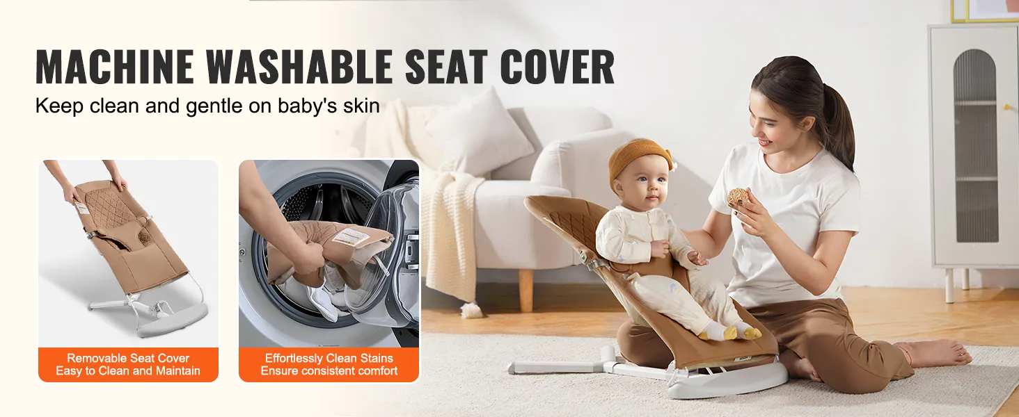 Onze babyschommelstoel is gemaakt van hoogwaardige, ademende materialen. Dankzij de afneembare stoelhoes is schoonmaken een fluitje van een cent, waardoor drukke ouders eenvoudig een frisse ruimte voor hun kleintje kunnen creëren.