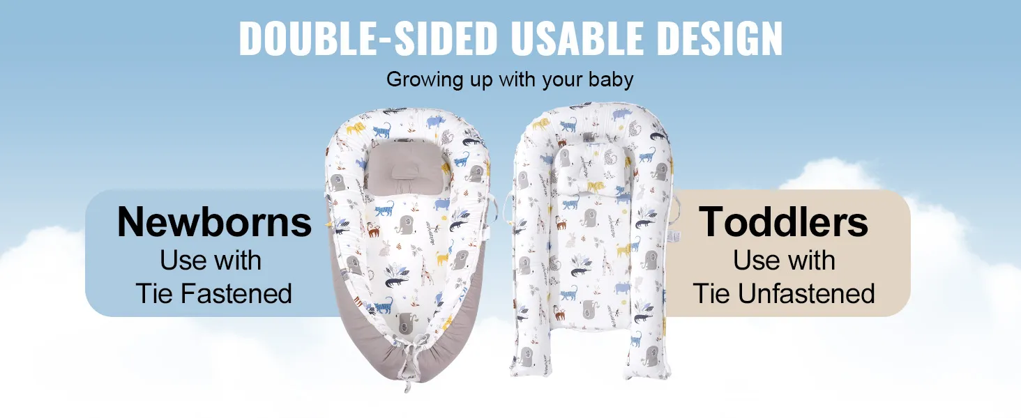 Two-Sided Usability: This infant lounger features a double-sided design, allowing you to easily switch sides as needed. Both sides offer the same level of comfort for your baby, extending the baby nest lounger's lifespan and reducing the need for frequent cleaning, making parenting more convenient and hassle-free.