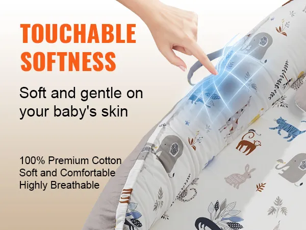 100% Pure Cotton Fabric: Crafted from premium, 100% pure cotton, this newborn nest cover is soft to the touch and gentle on delicate skin. Its fine texture offers a smooth and luxurious feel, while the excellent breathability ensures comfort, keeping your baby cool and cozy throughout the day.