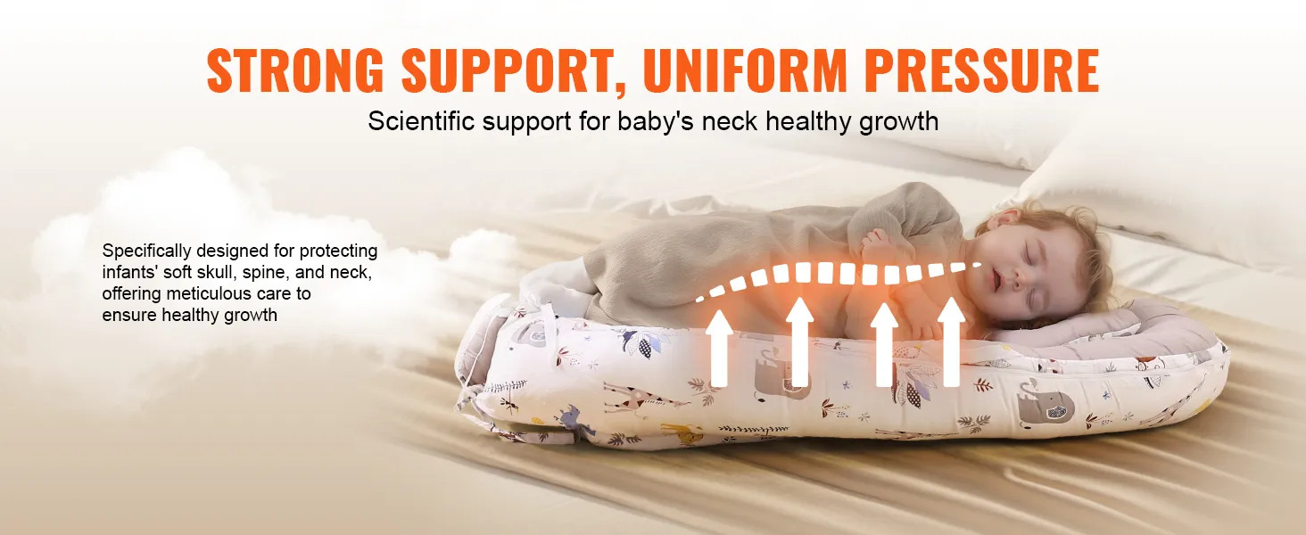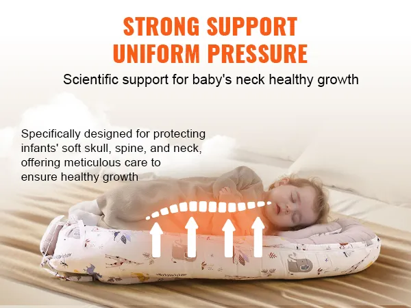 The 1.6-inch thickened cushion effectively relieves pressure and offers uniform support, ensuring gentle protection for your baby's delicate neck. It maintains stability without collapsing, creating a safe and secure sleeping environment for your little one.