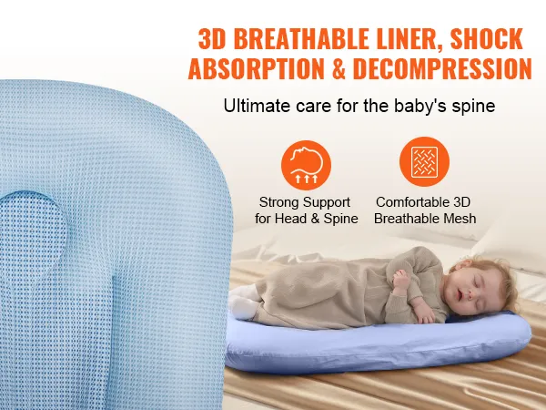 Cozy Like Mom's Embrace: The VEVOR baby lounger, featuring safe bumpers filled with high-elastic PP cotton, offers 360° bionic sleeping experience. The soft mattress supports your baby's back and promotes healthy spinal development, creating a secure and comfortable nest that helps your baby sleep soundly.