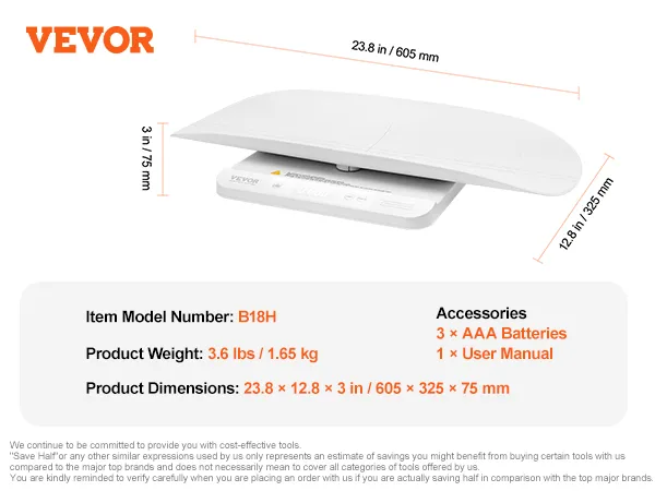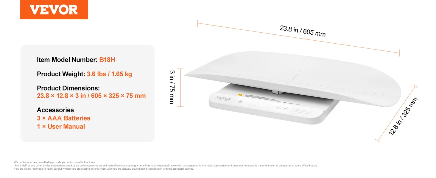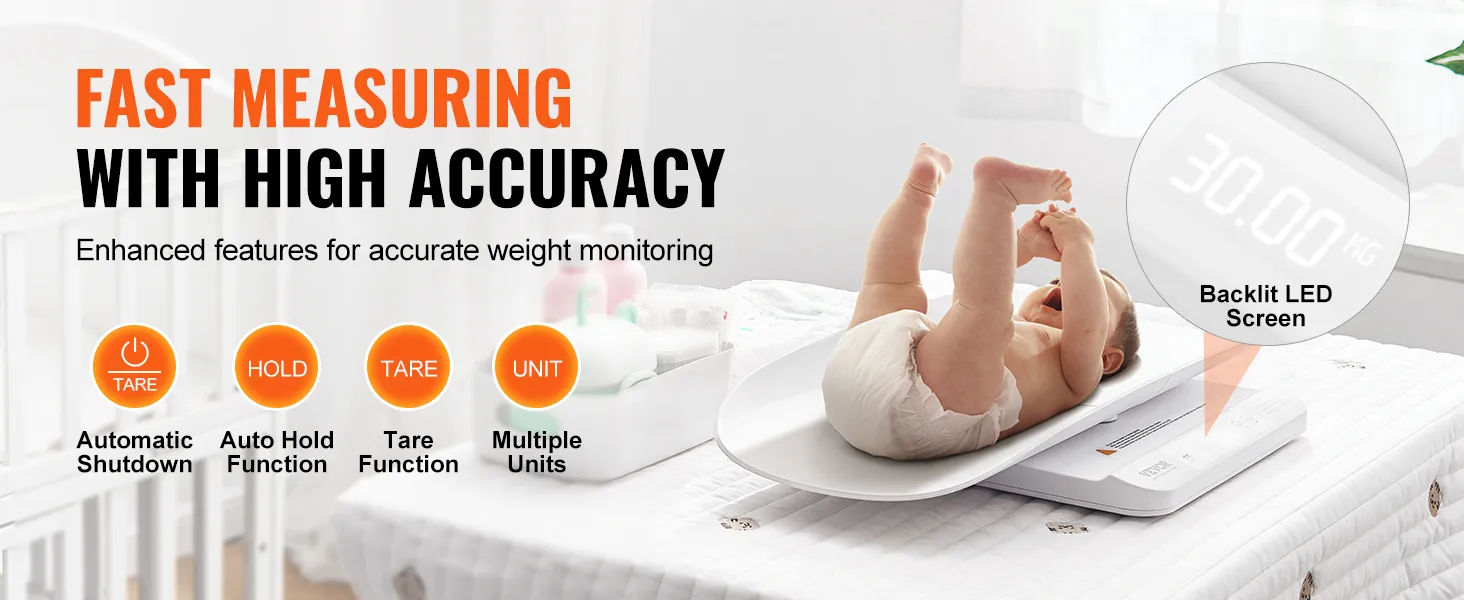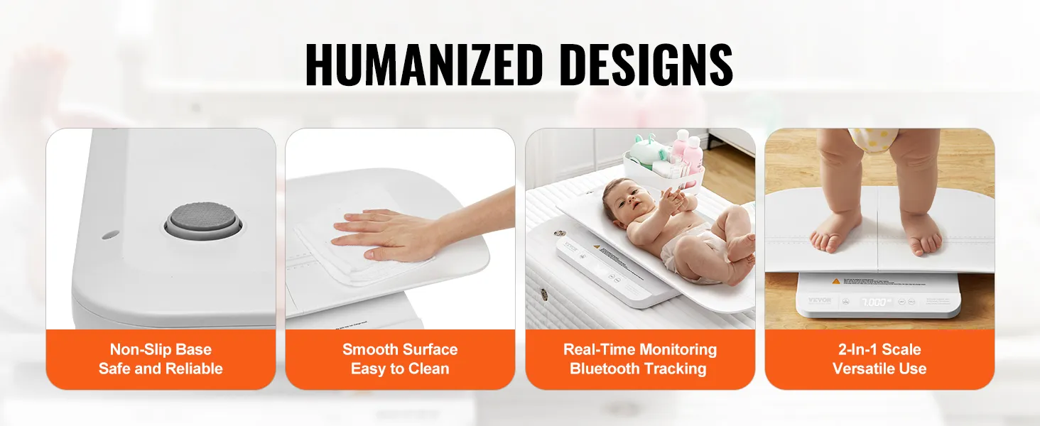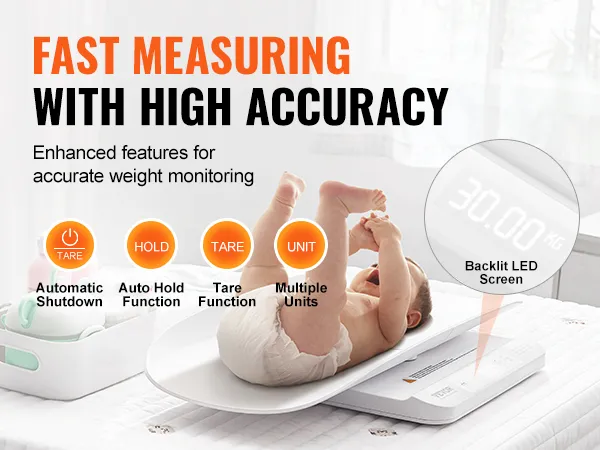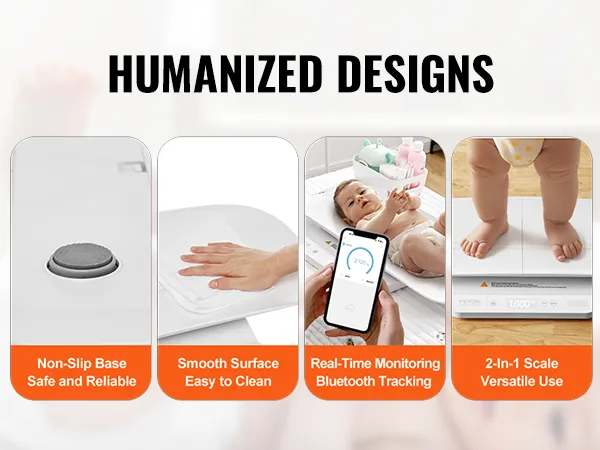 Bluetooth Tracking for Baby's Growth: VEVOR smart baby scale, upgraded with Bluetooth 4.0, enables easy recording and analysis of your baby's weight and growth data. Real-time tracking keeps you informed about every stage of baby's development