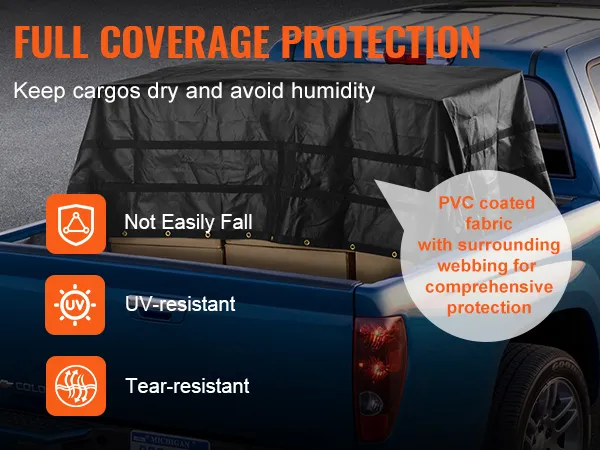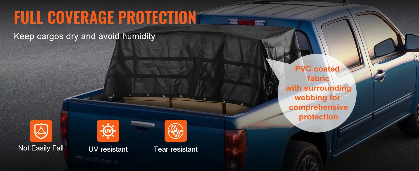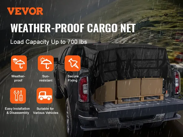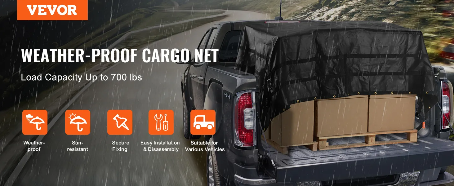 Het VEVOR bagagenet heeft een draagvermogen tot 318 kg, is probleemloos bestand tegen alle soorten extreme wind en regen en beschermt uw lading tegen vocht en beschadigingen.