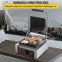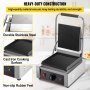 This panini press commercial with stainless steel outer casing and non-stick cast-iron grill is perfect for various food cooking, such as Panini sandwiches, steaks, meat, scrambled eggs, etc. The parallel half grooved plates facilitate the even heating, without flipping food. Temperature is 50-300℃ (122-572℉) adjustable. It is perfect for commercial use!