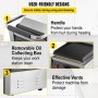 The grease tray in front of the cooking grid allows for collecting of waste oil and residue, which is easy taken off for easy cleaning.