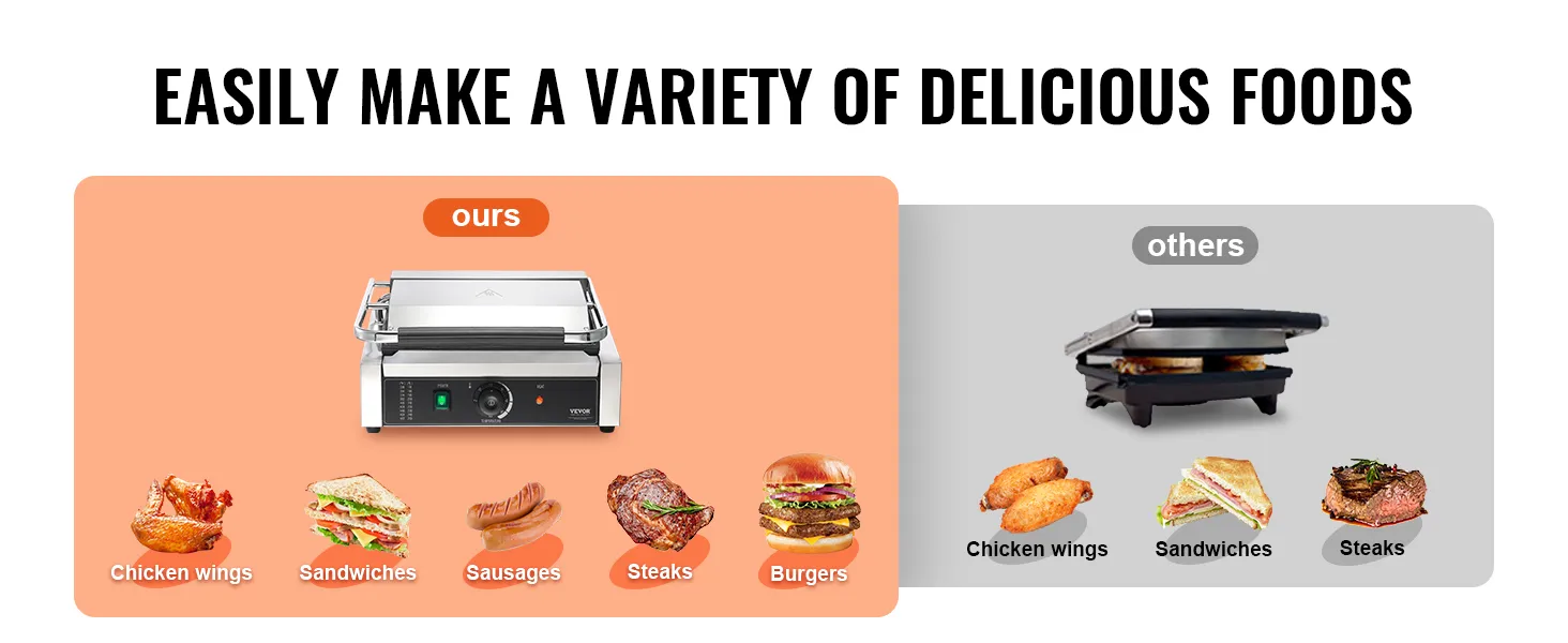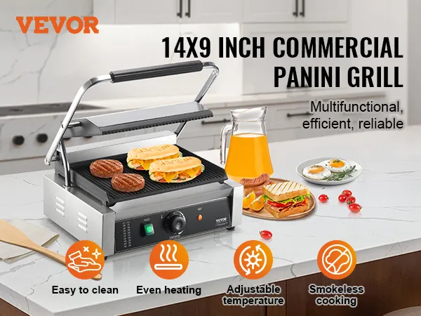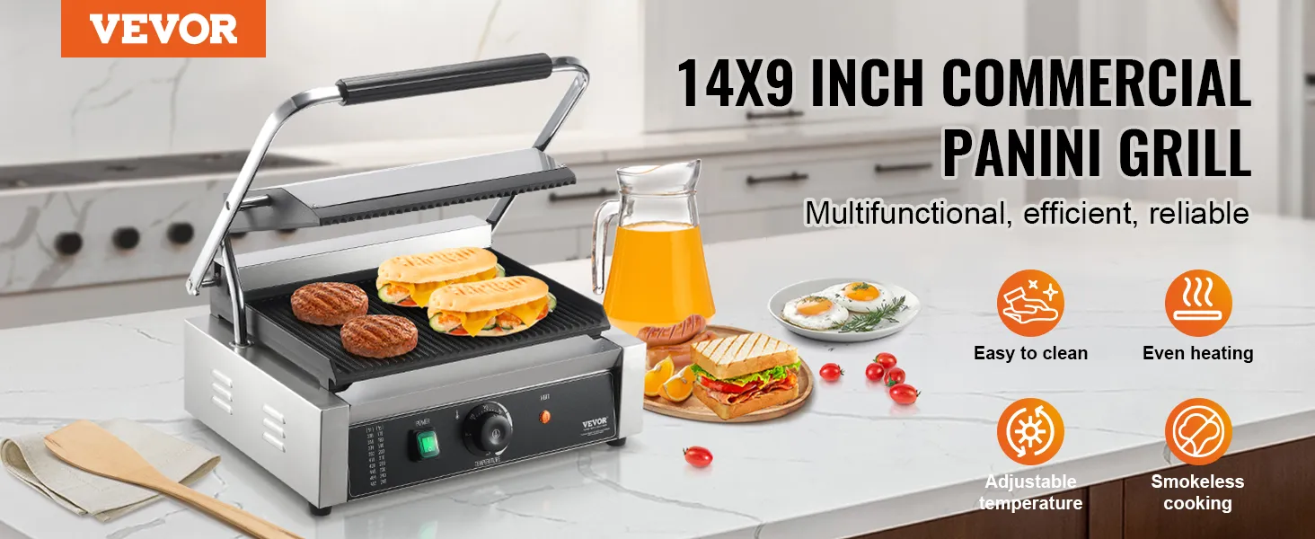 Onze commerciële panini-grill kan een breed scala aan gerechten grillen voor een verscheidenheid aan familiebijeenkomsten en meer. Hij biedt een veelzijdige kookervaring, terwijl het compacte grillformaat een groot grilloppervlak biedt zonder veel aanrechtruimte in beslag te nemen.