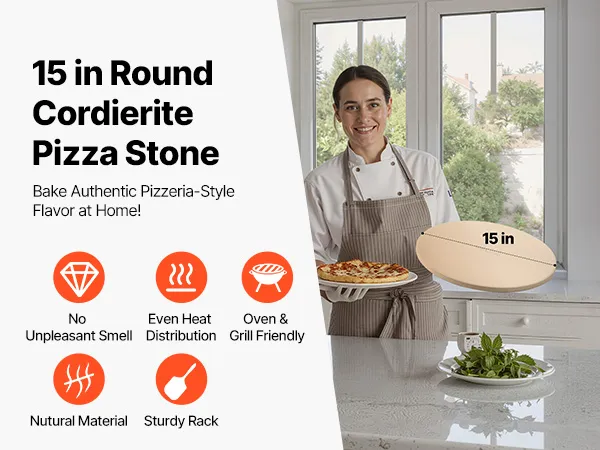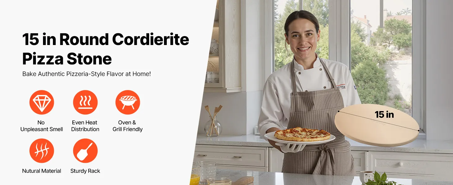Verbeterde bakresultaten: Onze pizzasteen van 381 mm (15 inch) heeft een poreuze structuur. Dit zorgt voor een gelijkmatige warmteverdeling en absorbeert overtollige stoom van de deegbodem om te voorkomen dat de pizza te zacht wordt en aanbrandt. Zo krijgt u een knapperige pizzabodem.