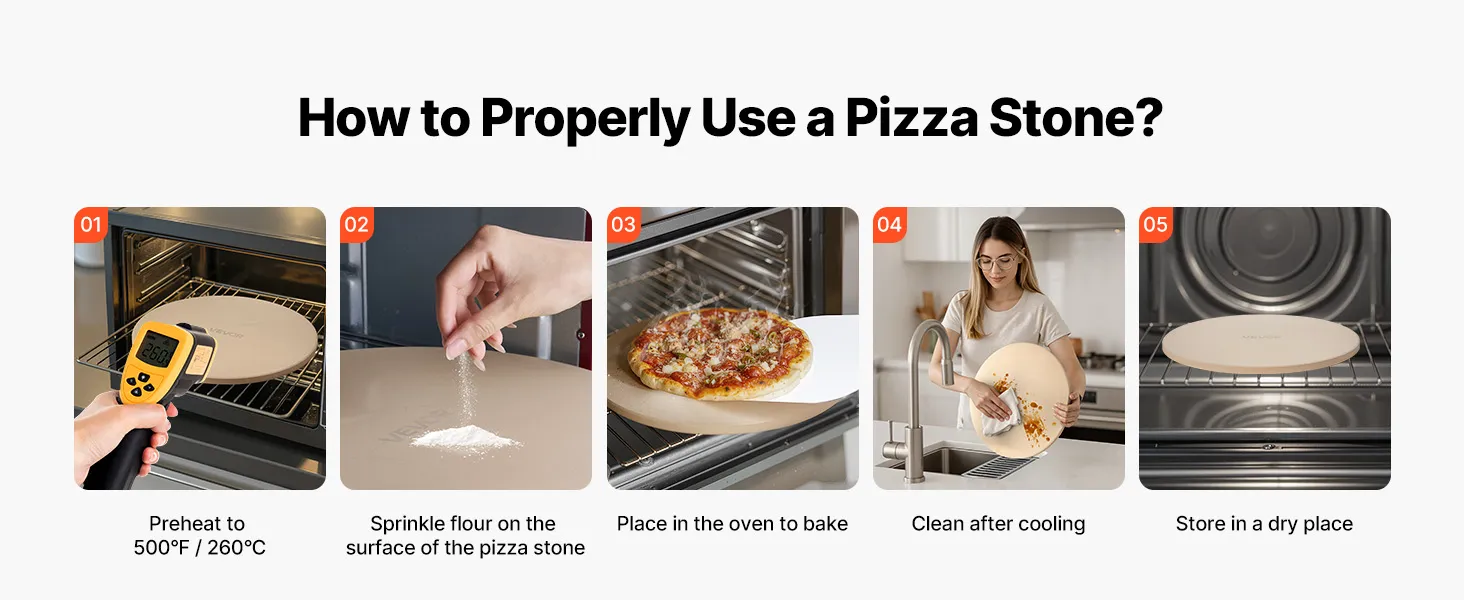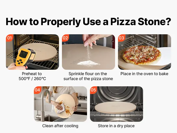 Gemakkelijk schoon te maken: Na afkoeling wast u de cordieriet pizzasteen eenvoudig af met warm water, veegt u hem af met een vochtige doek en droogt u hem af. Bij langdurig gebruik zal het eten dat erop wordt bereid een intensere smaak ontwikkelen. Let op: Eerste gebruik: Maak hem eerst schoon en droog hem af en verwarm hem vervolgens langzaam om de levensduur te verlengen.