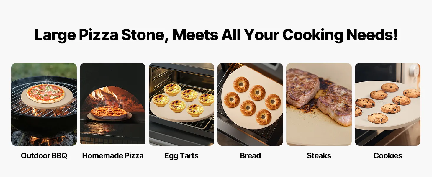 Veelzijdig gebruik: Deze grote baksteen past in ovens, houtskoolgrills, barbecues en steenovens. Hij is geschikt voor het bakken van knapperige pizza's, gebak en brood, of voor het opwarmen van eten om de knapperigheid te herstellen – ideaal voor thuis koken, buiten grillen en feestjes. Let op: Meet uw grill en de binnenkant van uw oven op om de juiste maat te kiezen. Zorg voor een minimale ruimte van 2-5 cm aan alle kanten.