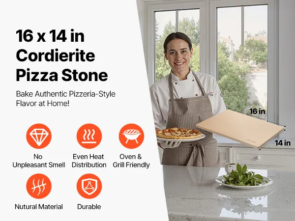 Verbeterde bakresultaten: Onze pizzasteen van 406 x 355 mm (16 x 14 inch) heeft een poreuze structuur. Dit zorgt voor een gelijkmatige warmteverdeling en absorbeert overtollige stoom van de deegbodem om te voorkomen dat de pizza te zacht wordt en aanbrandt. Zo krijgt u een knapperige pizzabodem.