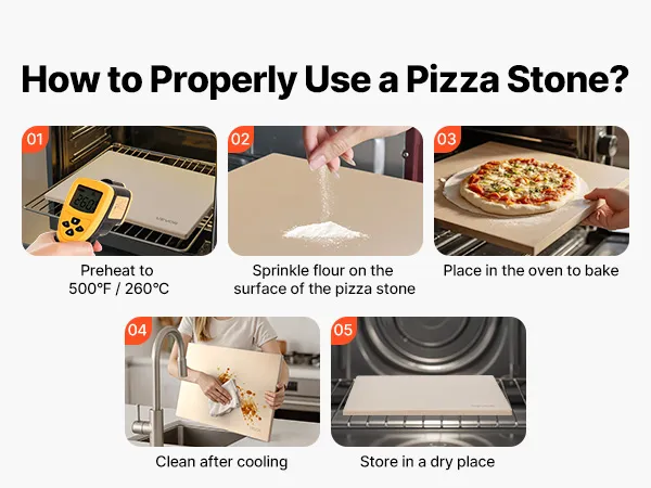 Gemakkelijk schoon te maken: Na afkoeling wast u de cordieriet pizzasteen eenvoudig af met warm water, veegt u hem af met een vochtige doek en droogt u hem af. Bij langdurig gebruik zal het eten dat erop wordt bereid een intensere smaak ontwikkelen. Let op: Eerste gebruik: Maak hem eerst schoon en droog hem af en verwarm hem vervolgens langzaam om de levensduur te verlengen.