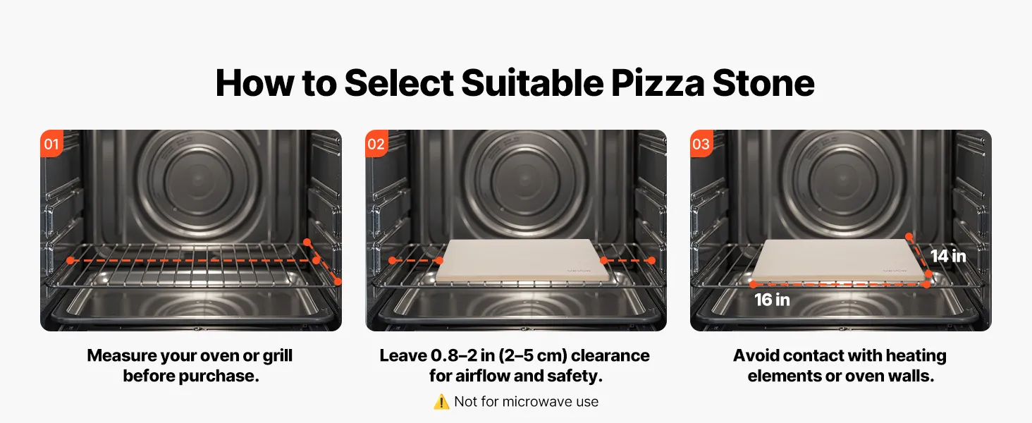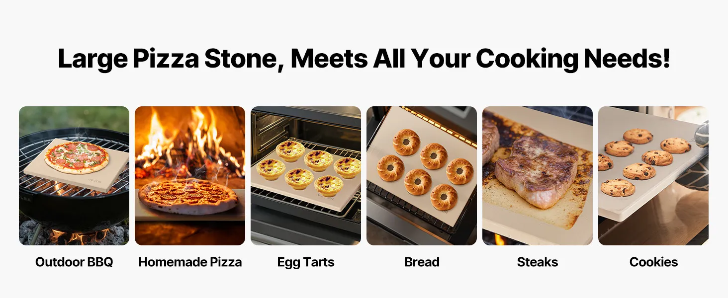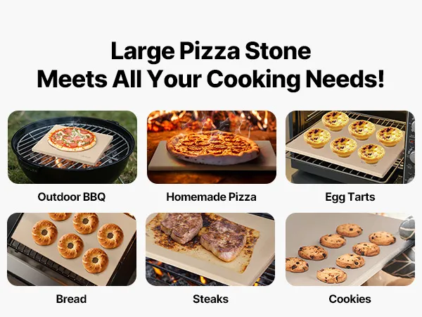 Veelzijdig gebruik: Deze grote baksteen past in ovens, houtskoolgrills, barbecues en steenovens. Hij is geschikt voor het bakken van knapperige pizza's, gebak en brood, of voor het opwarmen van eten om de knapperigheid te herstellen – ideaal voor thuis koken, buiten grillen en feestjes. Let op: Meet uw grill en de binnenkant van uw oven op om de juiste maat te kiezen. Zorg voor een minimale ruimte van 2-5 cm aan alle kanten.