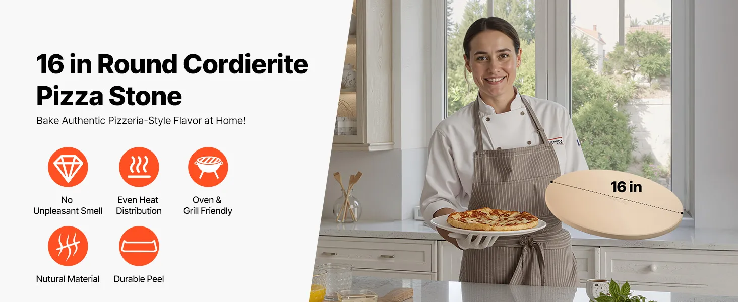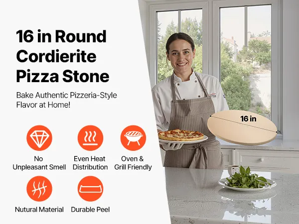 Verbeterde bakresultaten: Onze pizzasteen van 406 mm (16 inch) heeft een poreuze structuur. Dit zorgt voor een gelijkmatige warmteverdeling en absorbeert overtollige stoom van de deegbodem om te voorkomen dat de pizza te zacht wordt en aanbrandt. Zo krijgt u een knapperige pizzabodem.