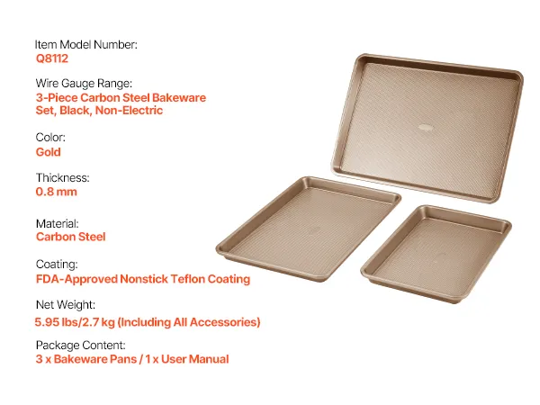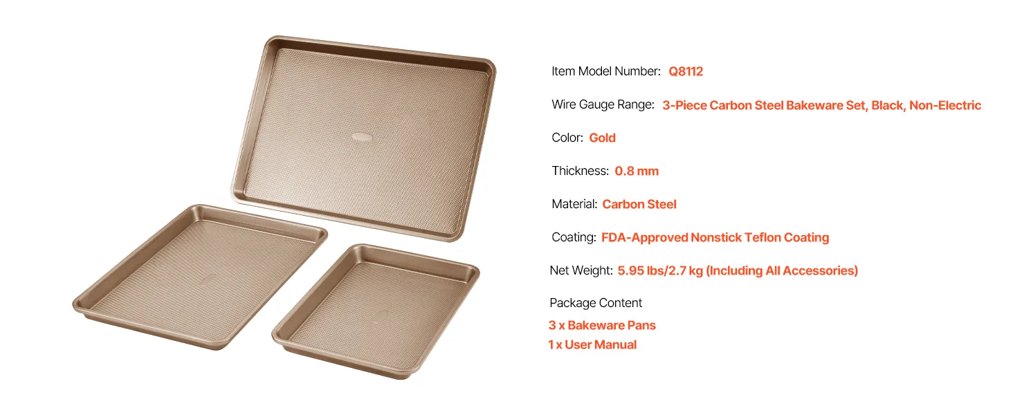 3-Piece Carbon Steel Bakeware Set, Gold, Non-Electric