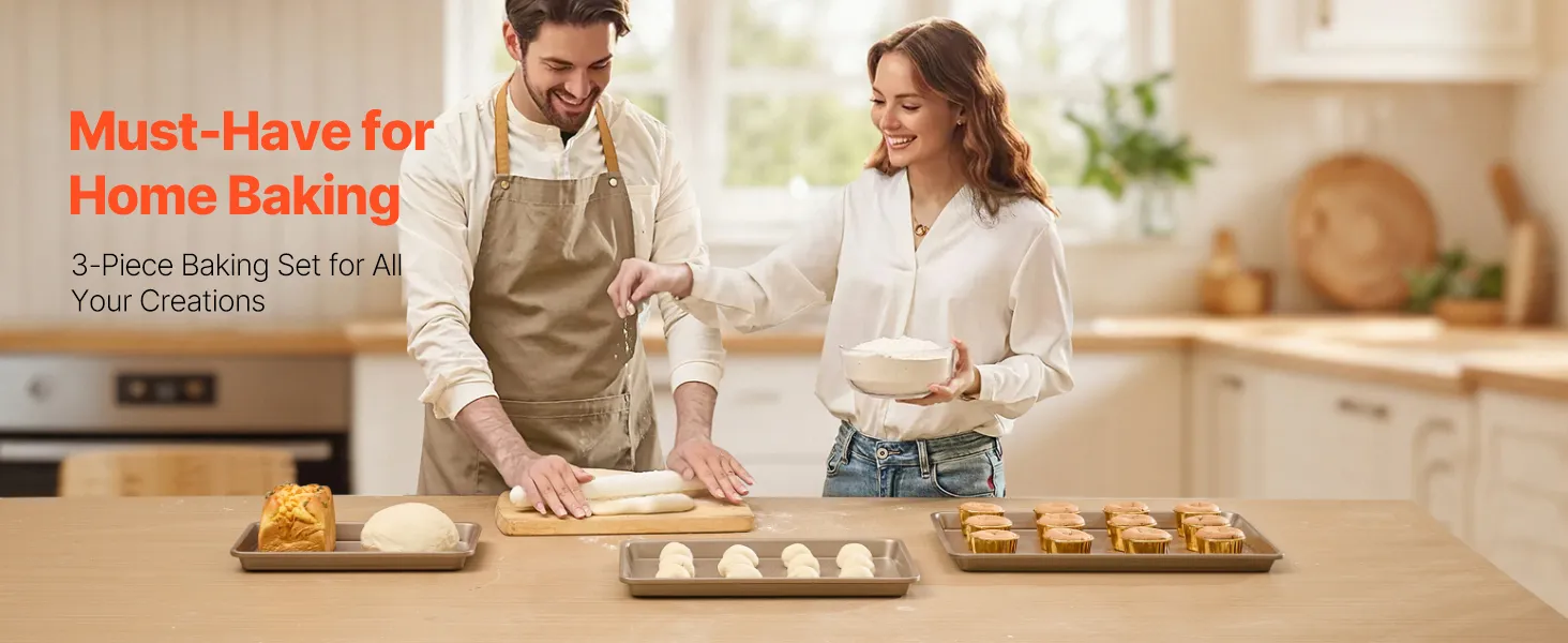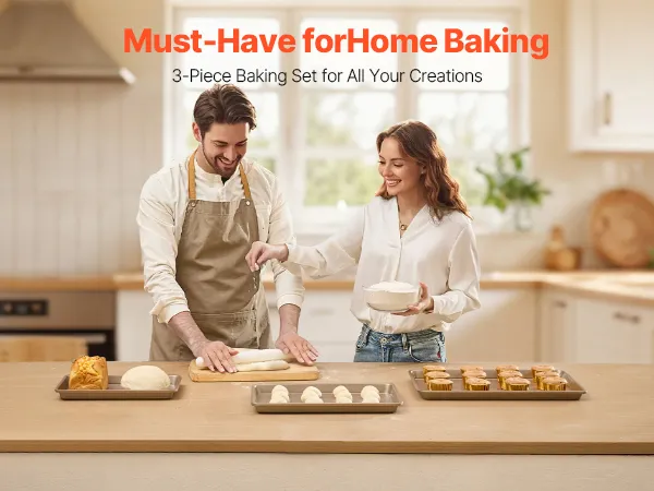 VEVOR Baking Pans Set, 3-Piece, Nonstick Carbon Steel Cookware Sheets & Trays, Stackable Kitchen Oven Bakeware Cooking Sets with Silicone Handles, Easy to Clean, for Baking Cookie Cake Muffin Bread VEVOR Baking Pans Set, 3-Piece, Nonstick Carbon Steel Cookware Sheets & Trays, Stackable Kitchen Oven Bakeware Cooking Sets with Silicone Handles, Easy to Clean, for Baking Cookie Cake Muffin Bread