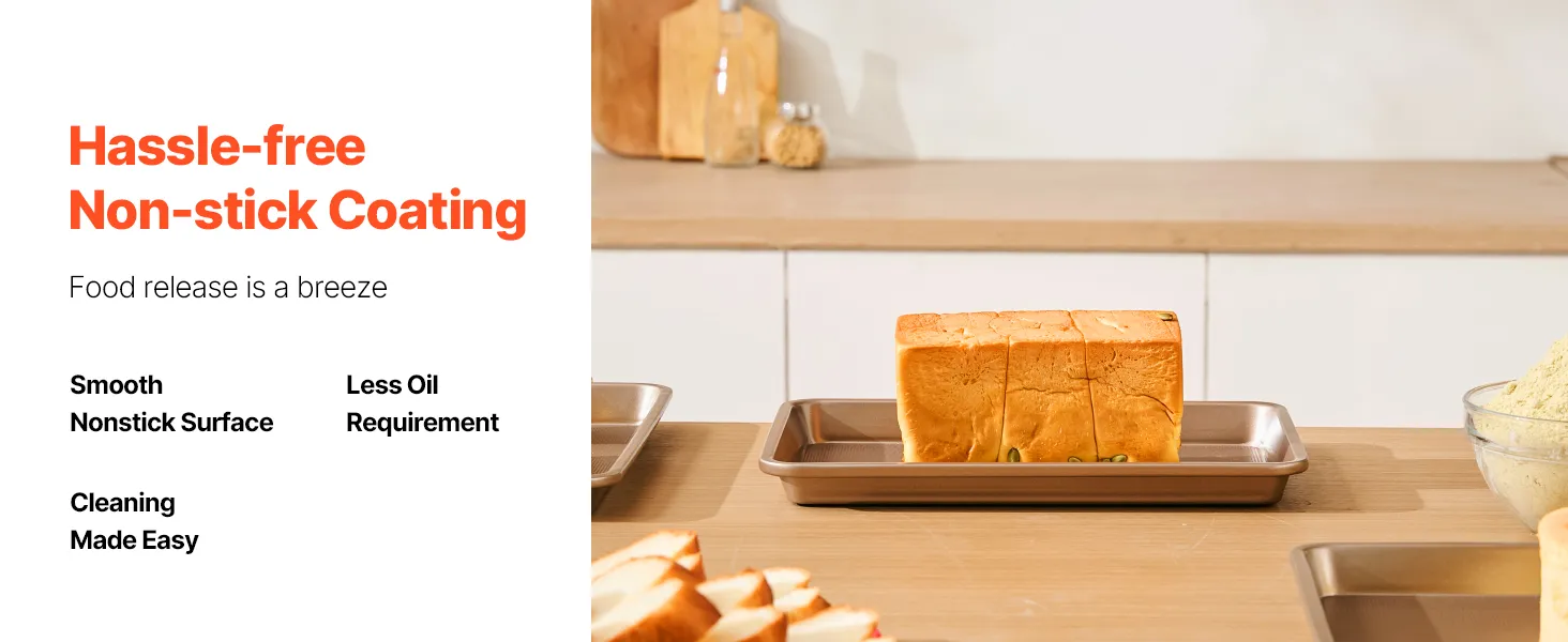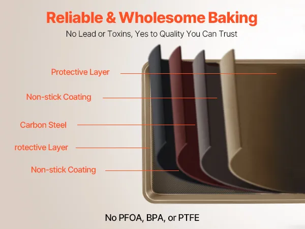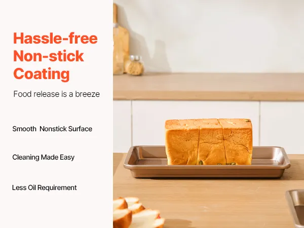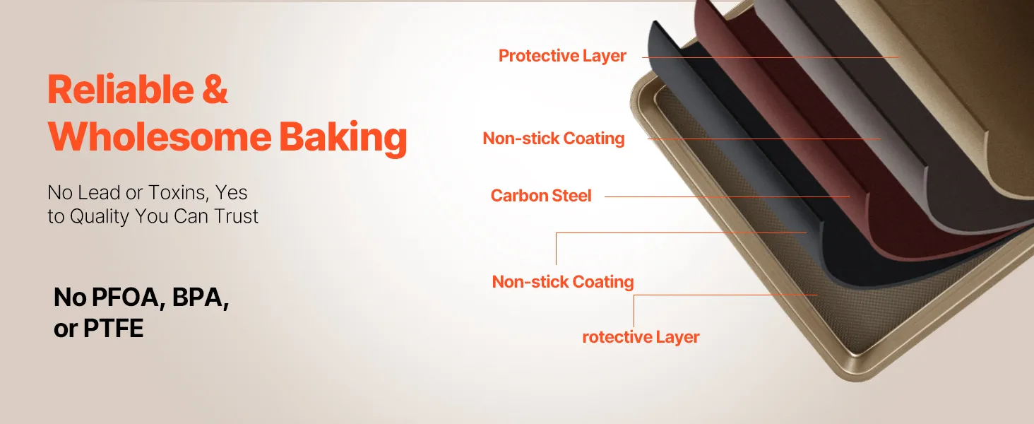 These baking pans are crafted from body-friendly and premium materials without harmful substances like PFOA, BPA, and PTFE. They resist scratches, stains, and corrosion, making them a better choice for wholesome baking.