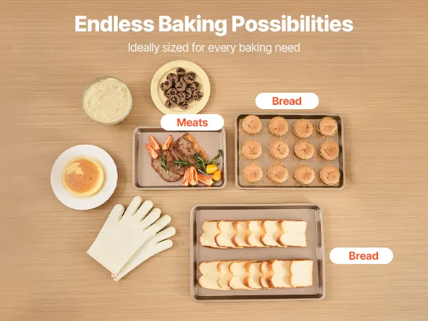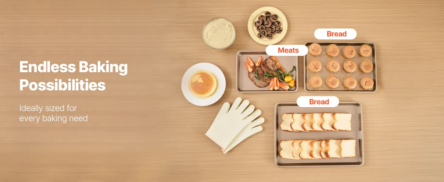 • Reliable & Outstanding Material: Made with durable, scratch, stain, and corrosion-resistant materials, this baking sheet set has no PFOA, BPA, and PTFE, ensuring reliable performance with every use. Ideal for your cookie sheets for baking, baking pans, and more!