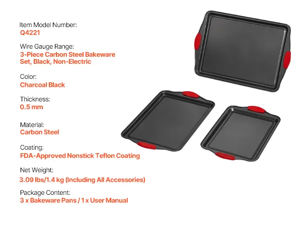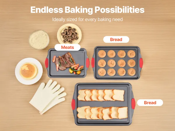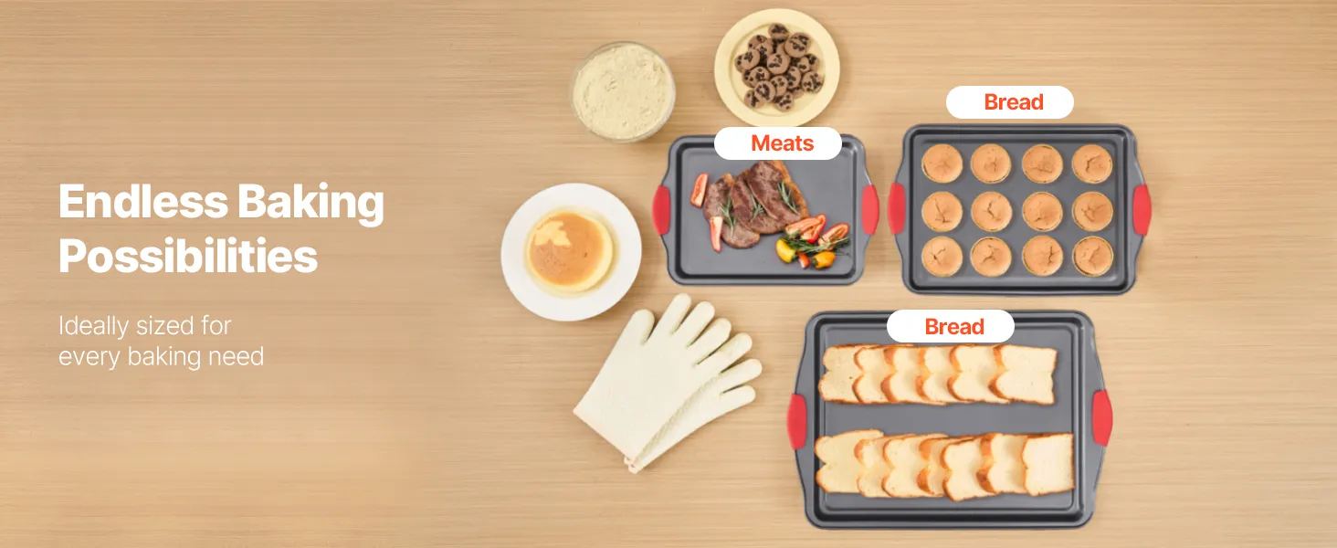 Choose from a variety of baking pan sizes to suit every need. The small pan is ideal for baking cookies, the medium pan is great for cakes, while the large pan handles meats and vegetables with ease. One set meets all your baking demands!