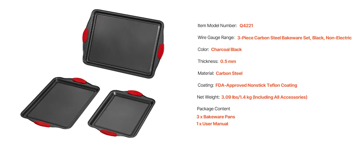 3-Piece Carbon Steel Bakeware Set 0.5mm, Black, Non-Electric