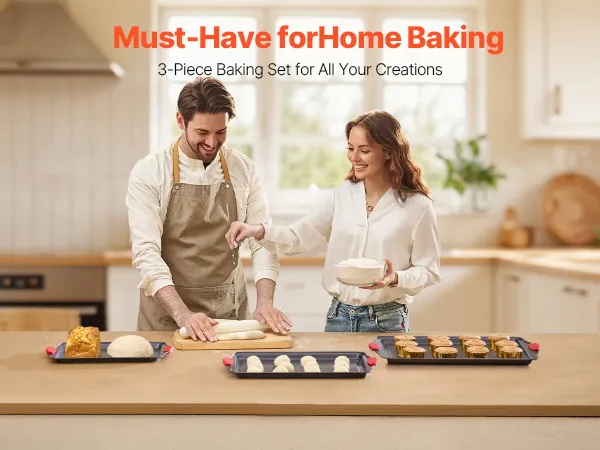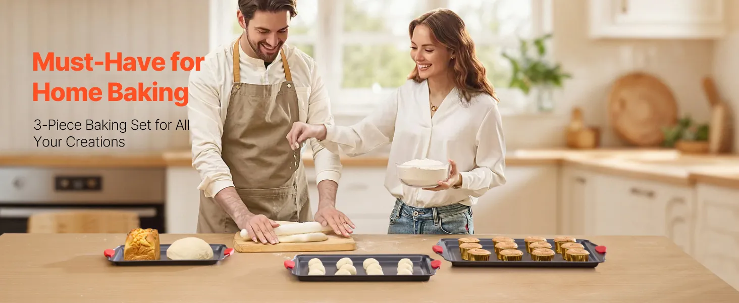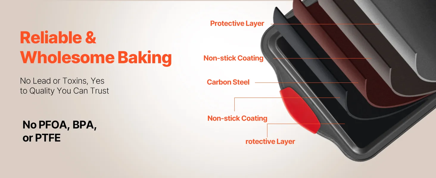 Reliable & Outstanding Material: Crafted from scratch-resistant, stain-resistant, and corrosion-resistant materials, this baking sheet set has no PFOA, BPA, and PTFE. Enjoy reliable performance with every use. Ideal for your cookie sheets for baking, baking pans, and more!