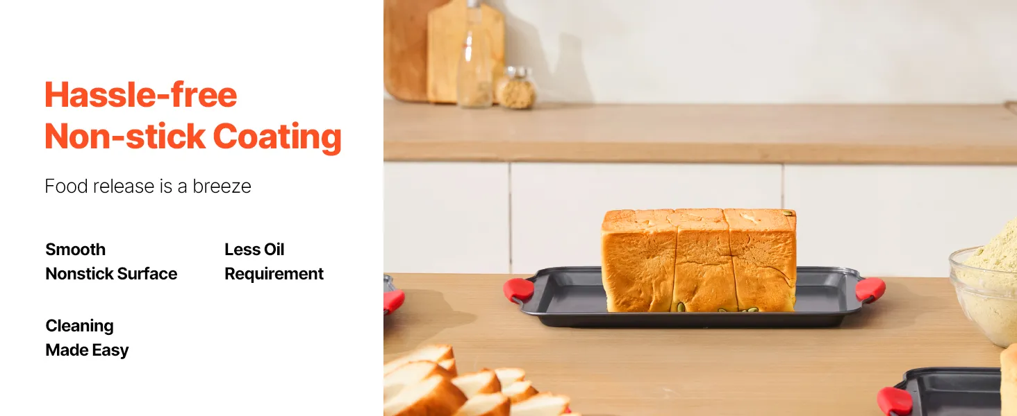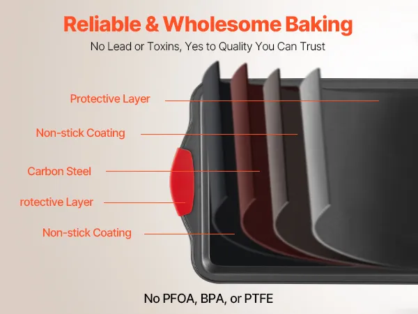 These baking pans are crafted from body-friendly and premium materials without harmful substances like PFOA, BPA, and PTFE. They resist scratches, stains, and corrosion, making them a better choice for wholesome baking.