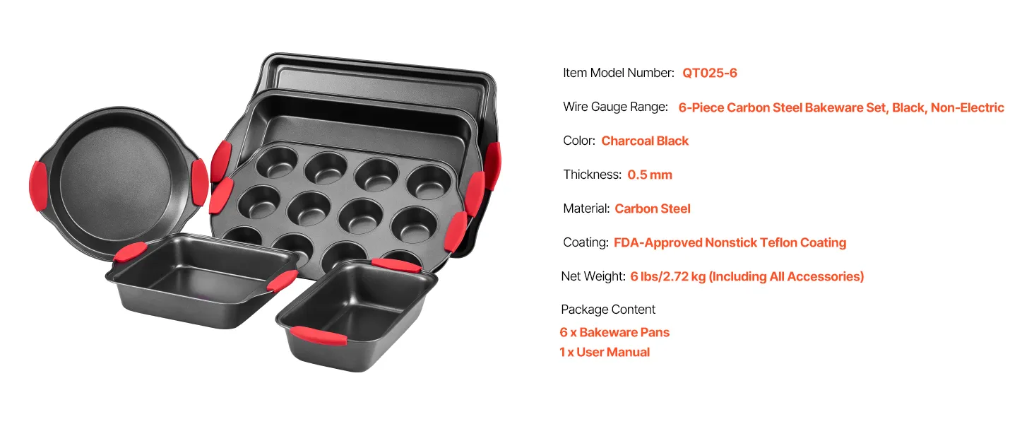 This versatile baking set includes 5 square pans and 1 round pans, making it ideal for all your home baking needs. Whether you're a beginner or an experienced home baker, this set has everything you need to create delicious treats with ease!