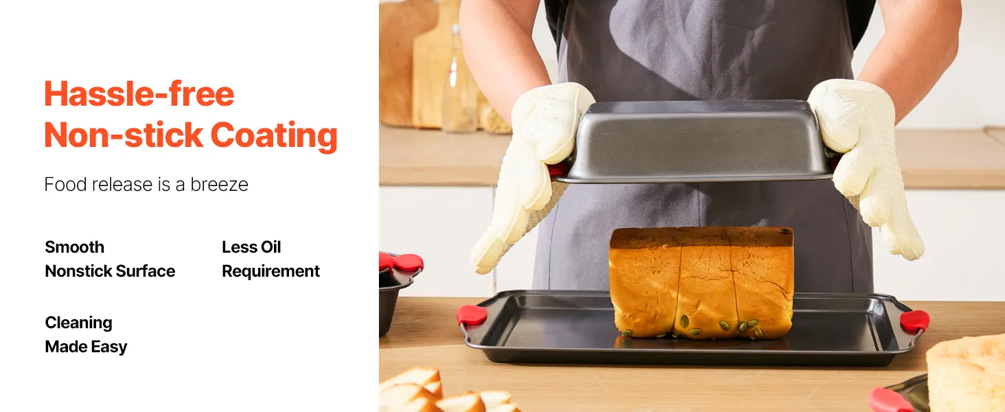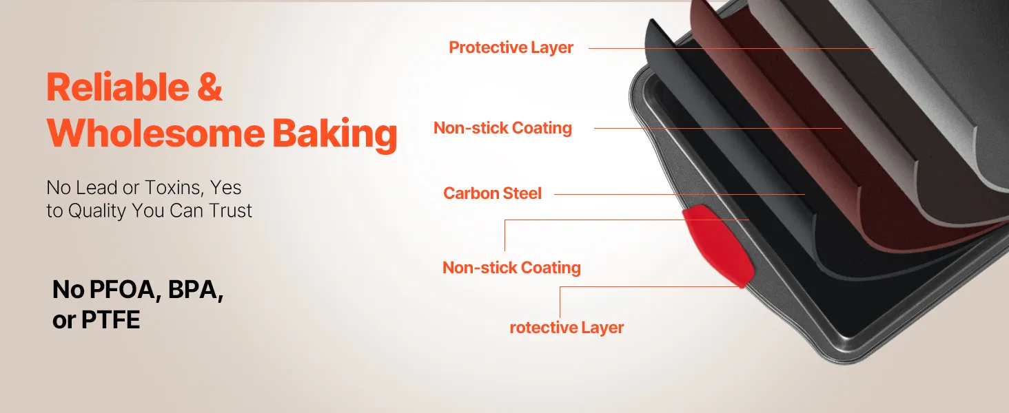These baking pans are crafted from body-friendly and premium materials without harmful substances like PFOA, BPA, and PTFE. They resist scratches, stains, and corrosion, making them a better choice for wholesome baking.