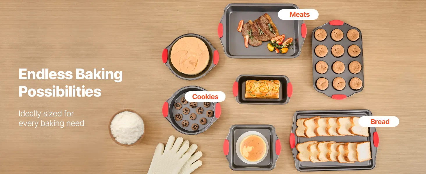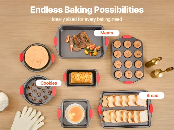 Choose from a variety of baking pan sizes to suit every need. The small pan is ideal for baking cookies, the medium pan is great for cakes, while the large pan handles meats and vegetables with ease. One set meets all your baking demands!