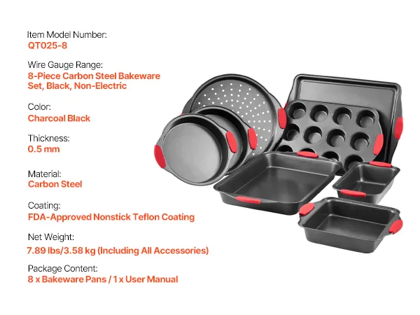 8-delige set bakgerei van koolstofstaal, zwart, niet-elektrisch