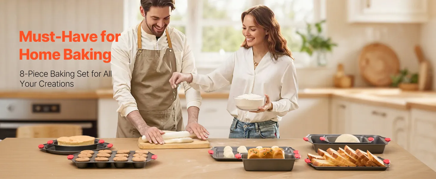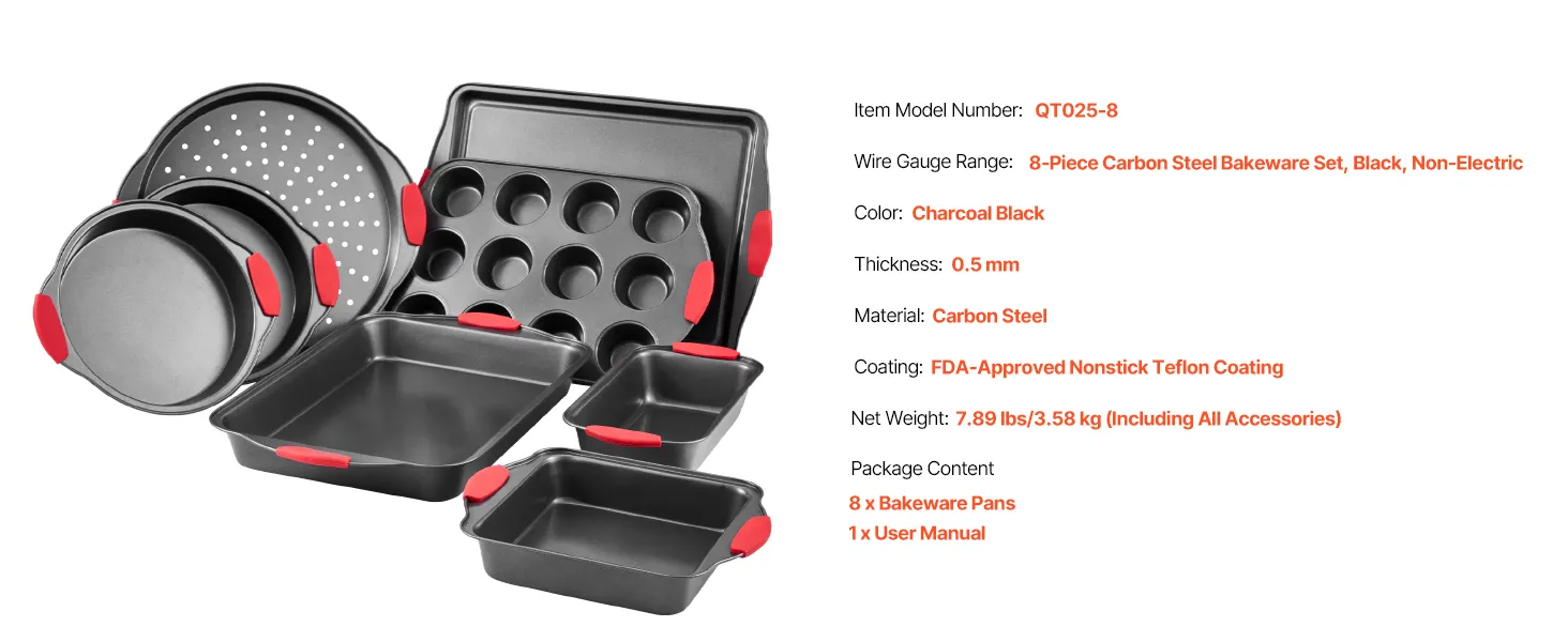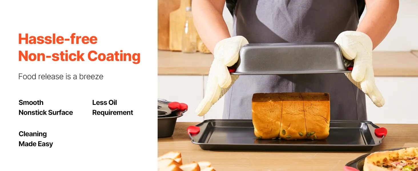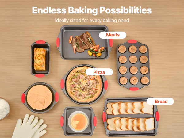 VEVOR Bakset 8-delige antiaanbaklaag van koolstofstaal, kookplaten en -schalen, baksets voor keukenovens met siliconen handgrepen, voor koekjes, cakes, muffins en brood