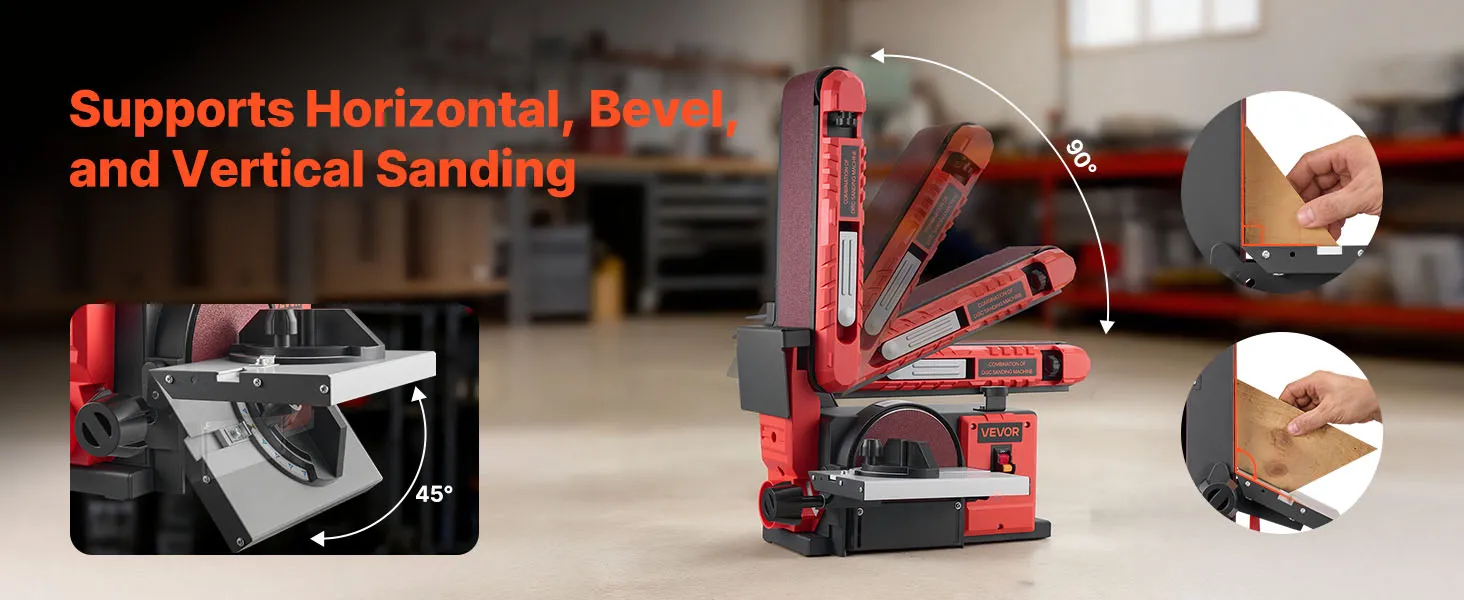 VEVOR Band- en schijfschuurmachine 400 W, 152,4 mm schijfschuurmachine en 101,6 x 914,4 mm bandschuurmachine, met 0-45° verstelbare werktafel en stofafzuigaansluiting voor houtbewerking, messen slijpen