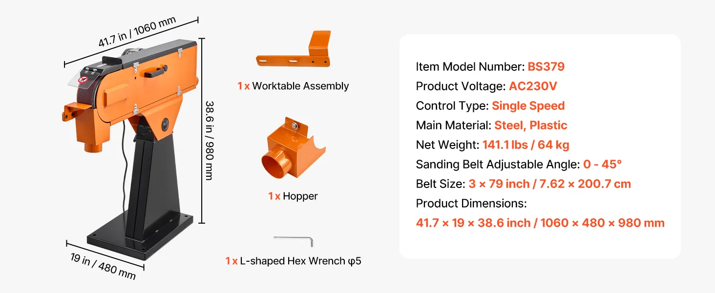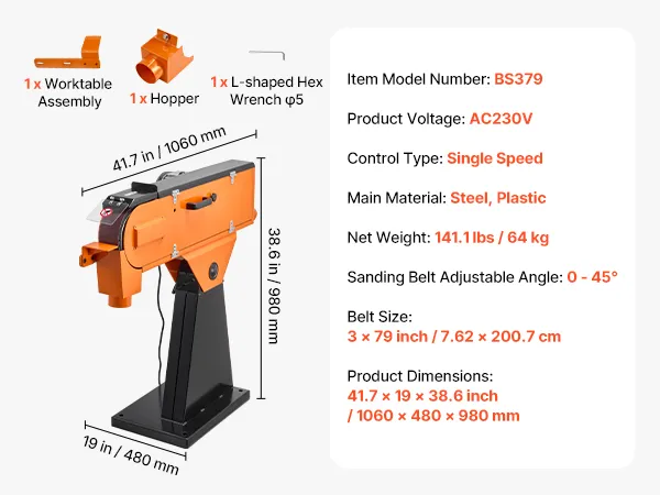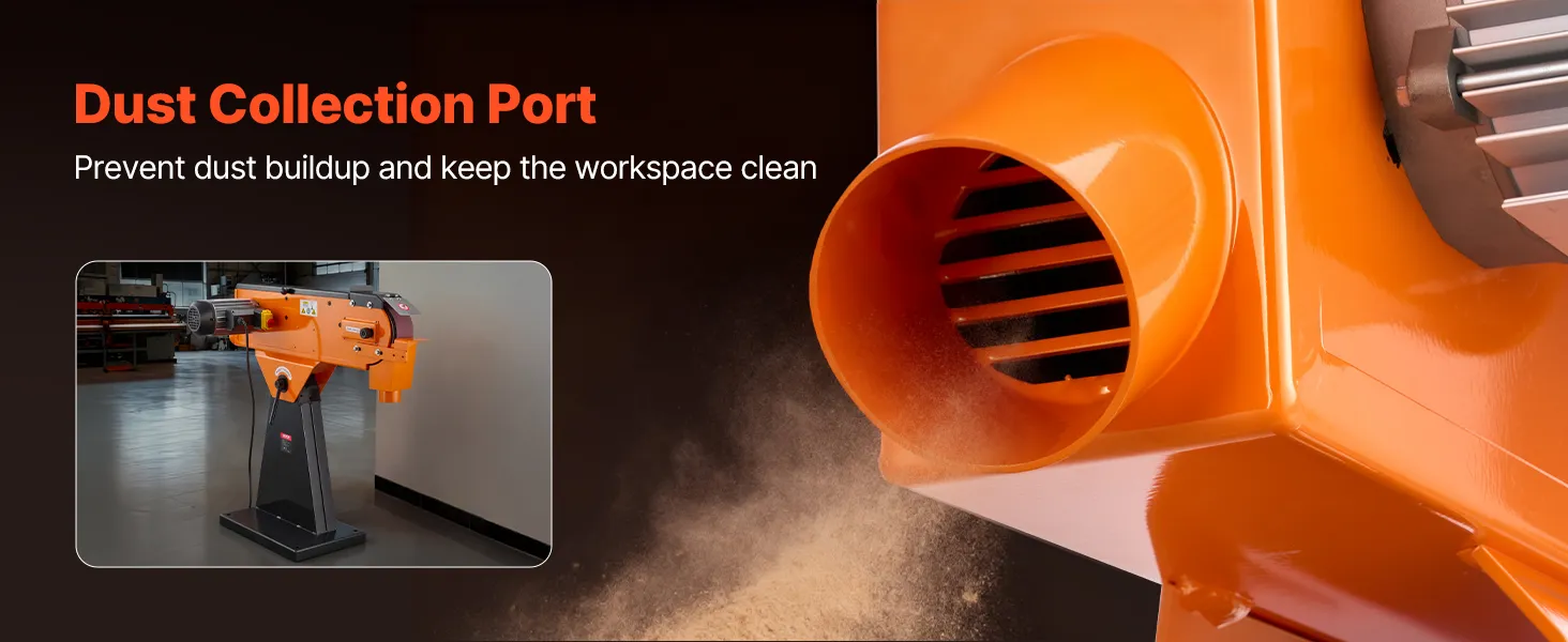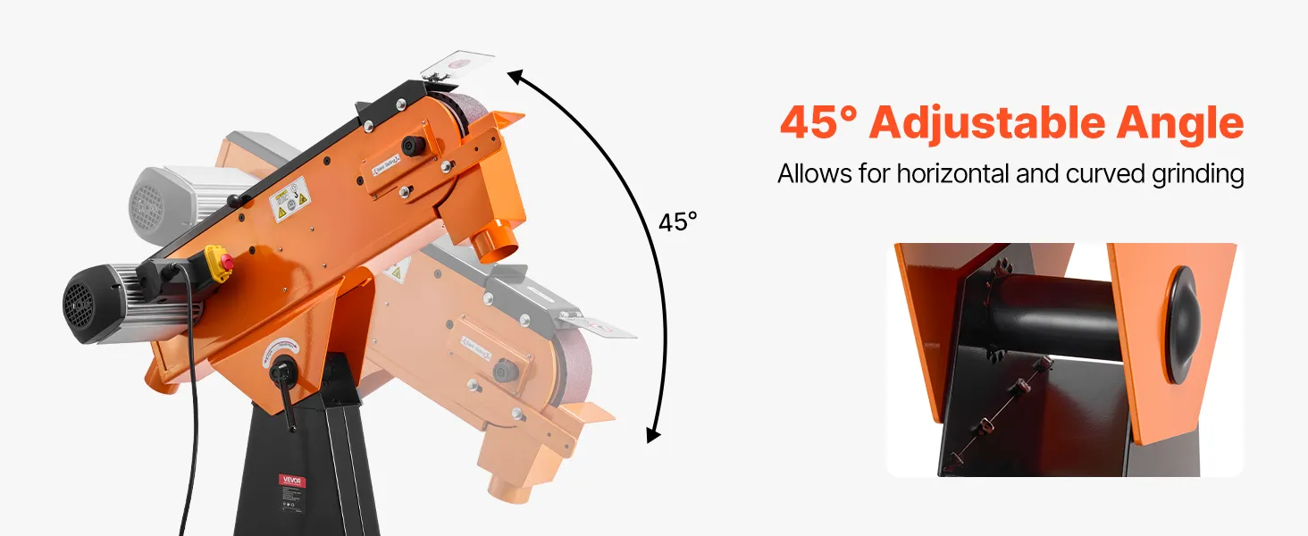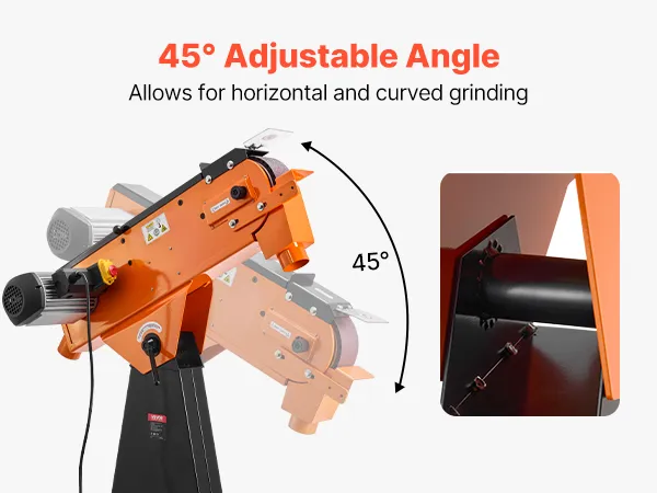 Schuren onder meerdere hoeken: De schuurband kan worden versteld van 0° tot 45°, waardoor zowel horizontaal als onder een hoek schuren mogelijk is. Stel de ideale hoek in voor verschillende werkstukvormen en -contouren om moeiteloos gladde en uniforme oppervlakken te verkrijgen.