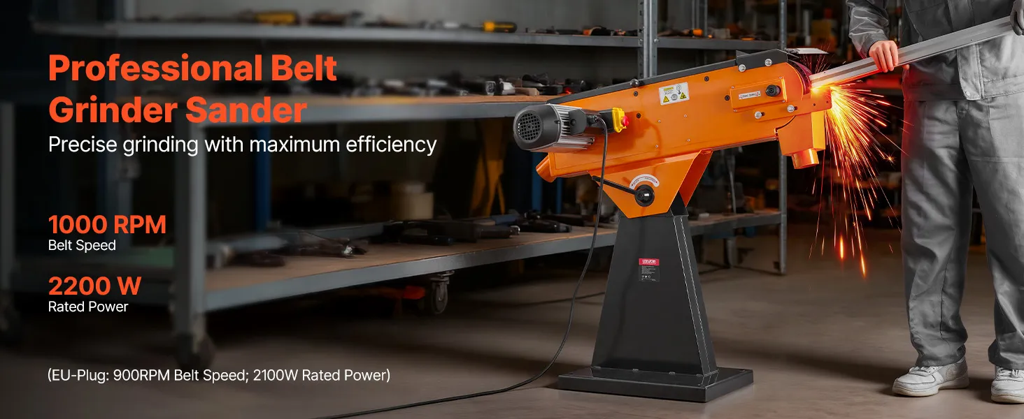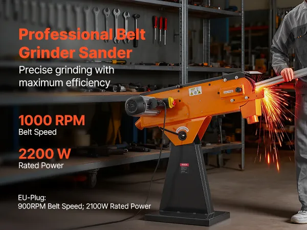 Industriële kwaliteit: Aangedreven door een krachtige motor van 2100 W met 900 tpm, klaart deze bandschuurmachine moeiteloos veeleisende schuur- en polijsttaken. Hij zorgt voor snelle materiaalafvoer en verhoogde efficiëntie bij hout- en metaalbewerking.