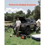 Supersnel oppompen: Dankzij het verbeterde ontwerp met dubbele cilinder, een hoge luchtstroom van 300 l/min en een maximale werkdruk van 10,3 bar (150 PSI) pompt onze 12V 1080W krachtige luchtcompressor twee keer zo snel op als andere compressoren, zodat u in een mum van tijd weer op weg bent.
