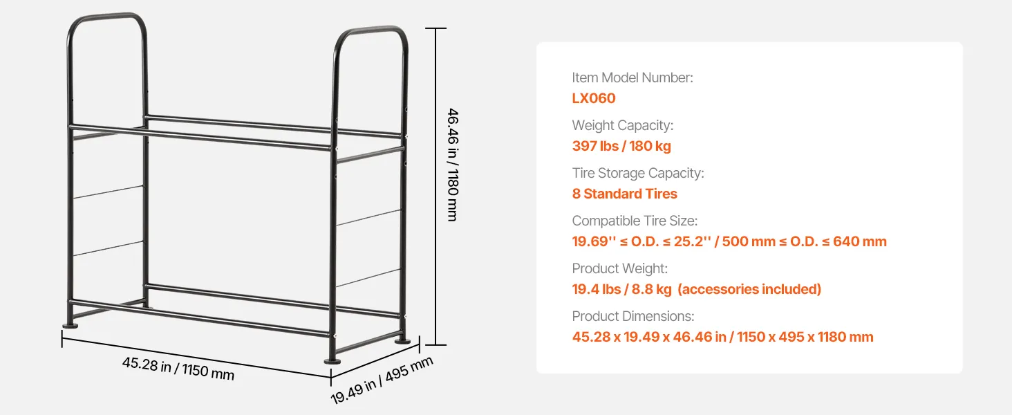 Durable and Rust-Resistant: Made from heavy-duty Q195 steel, this tire storage rack supports up to 397 lbs (180 kg), offering long-lasting durability. And the powder-coated surface enhances rust and corrosion resistance, ensuring its integrity for long-term use.