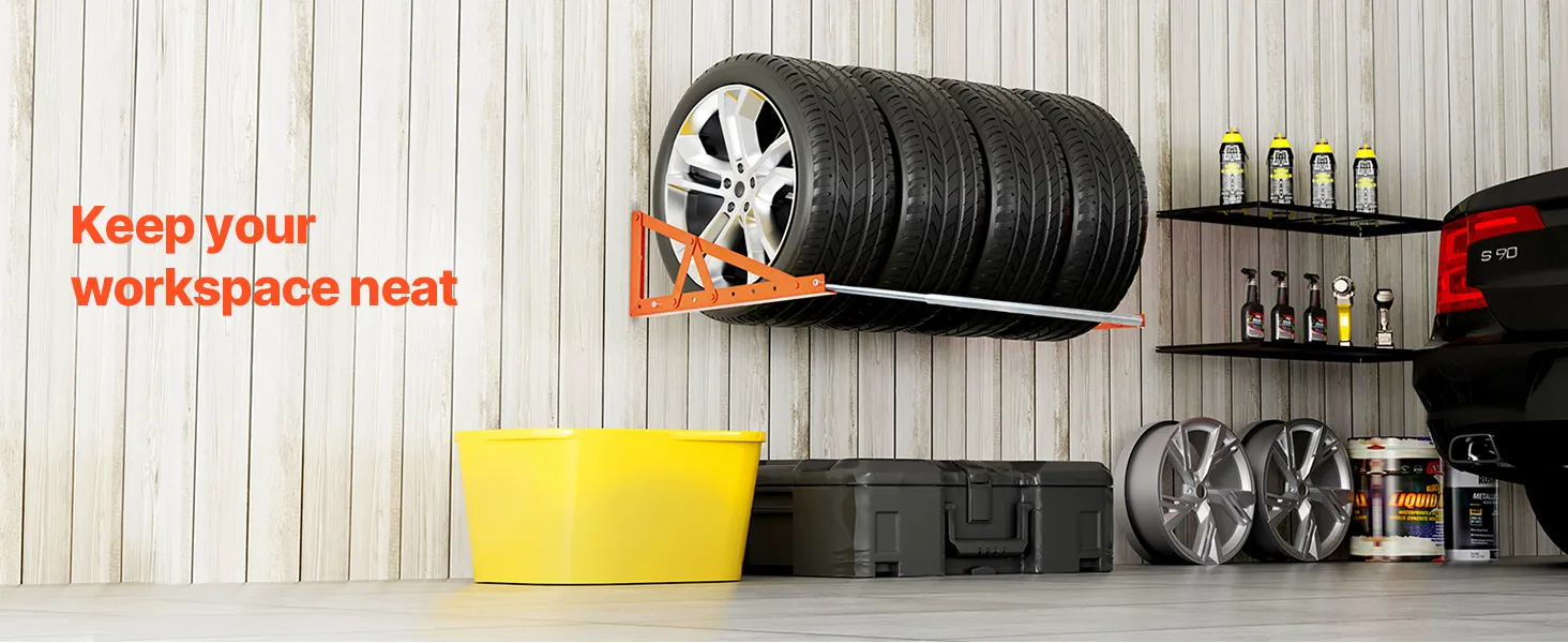 Mount your tires on the wall and free up valuable floor space, making your garage or workspace cleaner and more organized.