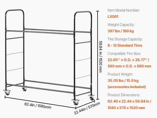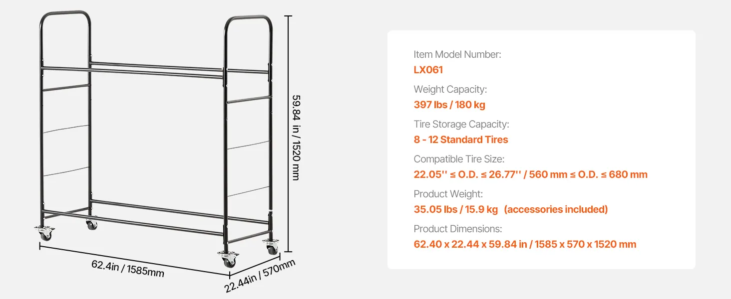 Durable and Rust-Resistant: Made from heavy-duty Q195 steel, this tire storage rack supports up to 397 lbs (180 kg), offering long-lasting durability. And the powder-coated surface enhances rust and corrosion resistance, ensuring its integrity for long-term use.