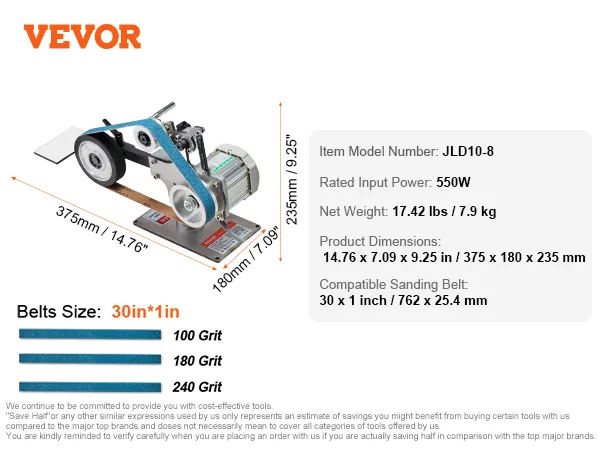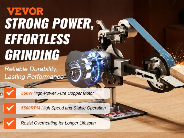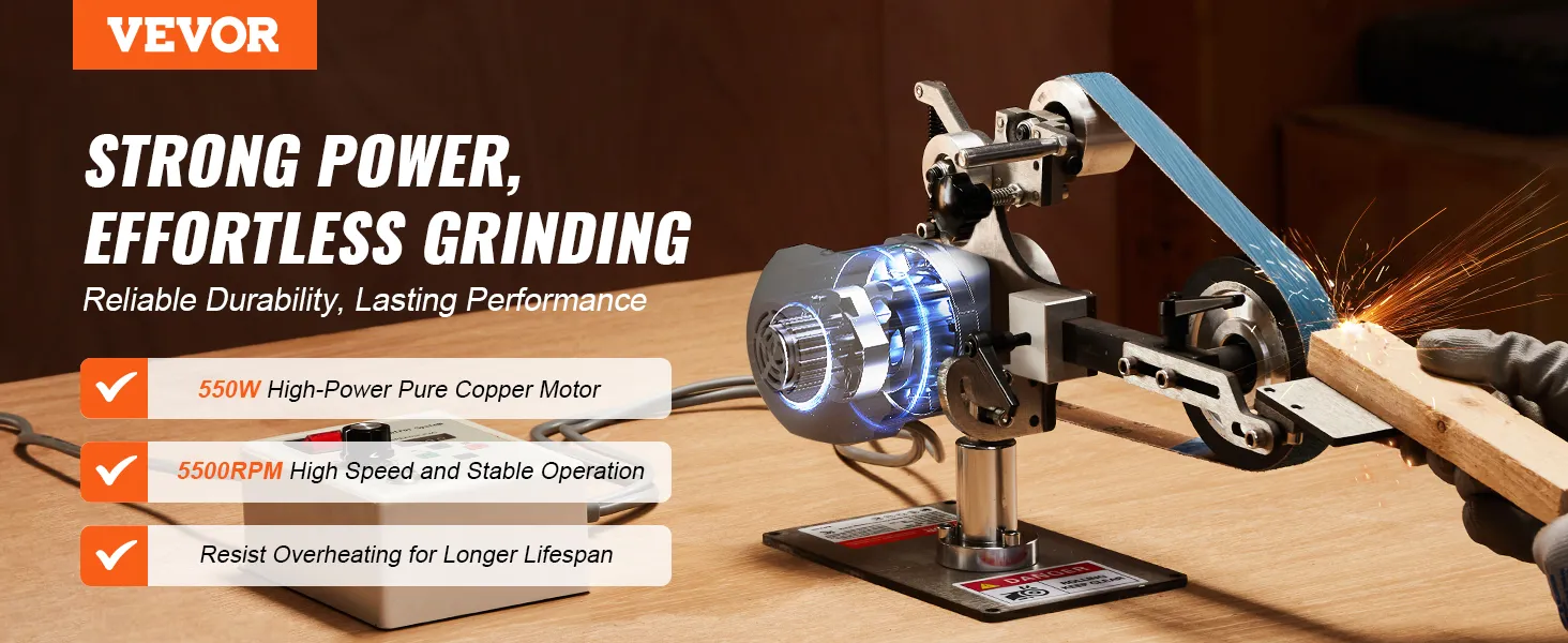 Sterke prestaties: Uitgerust met een puur koperen motor van 550 W en 5500 tpm, biedt de VEVOR bandschuurmachine superieure slijpprestaties, stillere werking en een langere levensduur in vergelijking met traditionele motoren. Geniet van een soepele werking en stabiele tracking zonder dat u zich zorgen hoeft te maken over oververhitting.