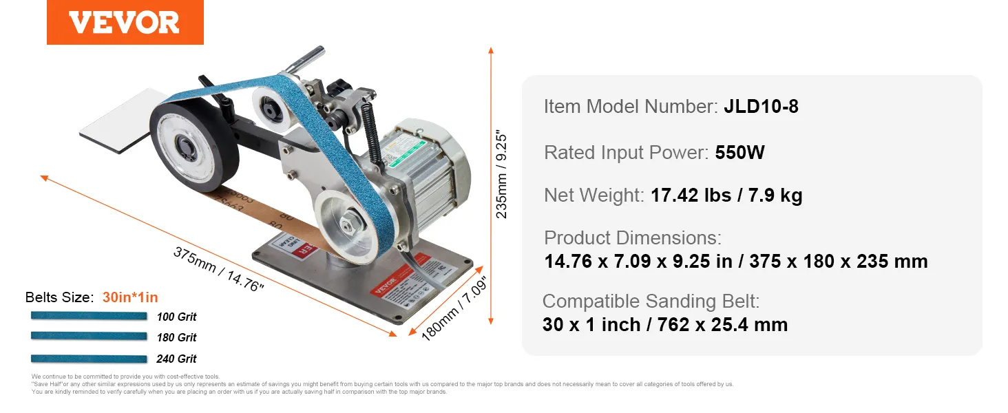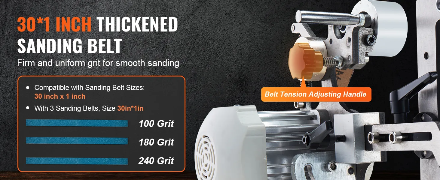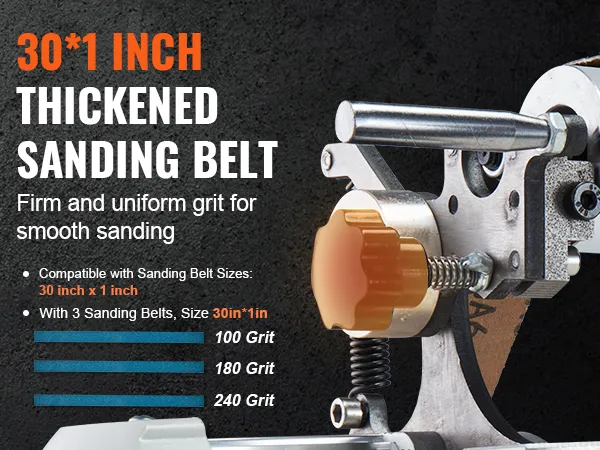 Verscheidenheid aan korrels voor meer veelzijdigheid: Deze bandschuurmachineset bevat 3 schuurbanden met verschillende korrels: korrel 100/180/240, voor grof en fijn schuren. Verbeter uw schuurprojecten met de juiste bandkeuze. (Bandmaat: 30 x 1 inch / 762 x 25,4 mm)