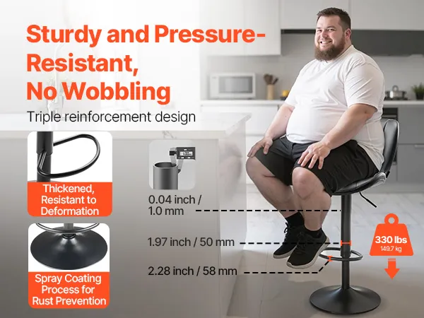 Sterke en stabiele ondersteuning: de barkrukken zijn gemaakt van verdikte ijzeren buizen met een stevige constructie en bieden een maximaal draagvermogen tot 149,7 kg. De poten van de kruk zijn voorzien van een spuitcoating voor roest- en krasbestendigheid.