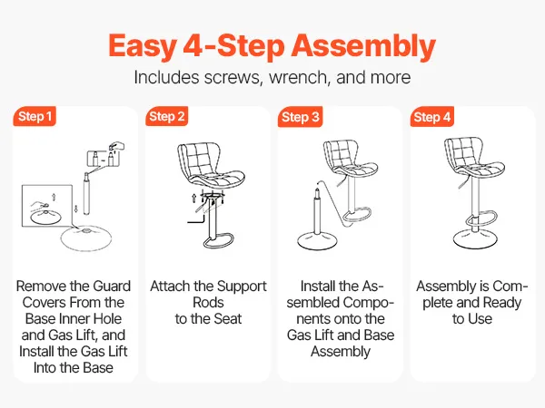 Eenvoudig te installeren gasveer: De barkrukken zijn voorzien van een tweetraps zwarte gasveer (330) die traploze hoogteverstelling mogelijk maakt. Ze zijn duurzaam en verliezen geen lucht, zelfs niet na veelvuldig gebruik. De montage is eenvoudig en beginnersvriendelijk, waardoor ze snel klaar zijn.