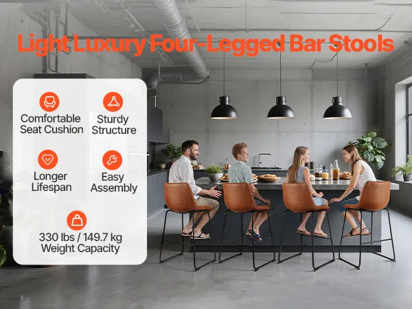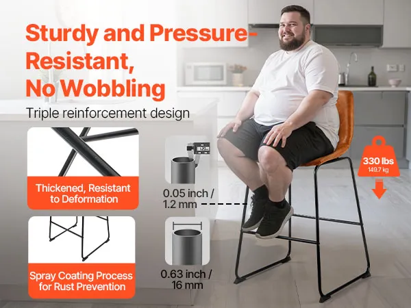 Dankzij de verdikte ijzeren buizen en de stevige constructie met vier hoeken biedt deze barkruk voor op het aanrechtblad uitzonderlijke ondersteuning, waardoor wiebelen of doorzakken wordt voorkomen. Hij is voorzien van een roestbestendige spuitcoating voor extra stabiliteit en duurzaamheid.