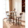 3-delige tafel- en stoelenset: Onze bartafelset bestaat uit een tafel (φ23,62 x 36,02 inch / 600 x 915 mm) en twee stoelen met rugleuning (13,78 x 16,54 x 36,22 inch / 350 x 420 x 920 mm) voor twee personen. De set heeft een rond blad in het midden met een diameter van 378 mm.